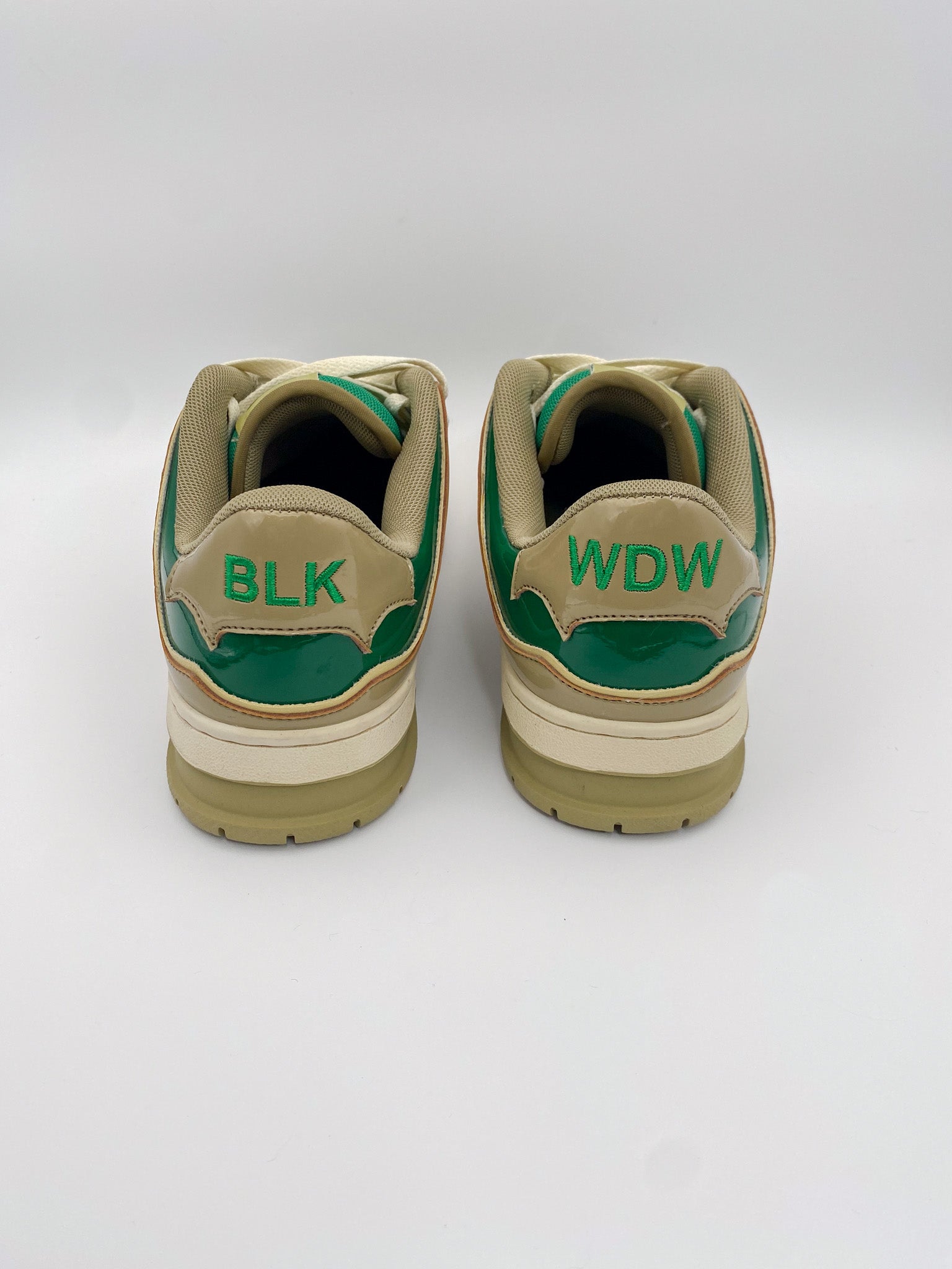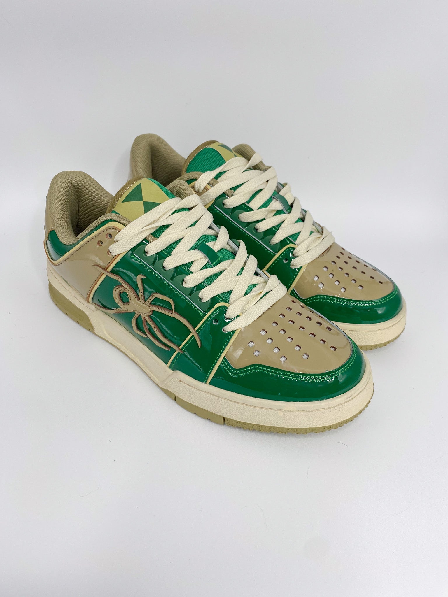 Designed by Emmanuel Mayweather, and inspired by Notre Dame this sneaker is a must have for the collection. With patent leather for the upper, metal shoe lace holder, leather stitched Black Widow logo and Embossed Web.